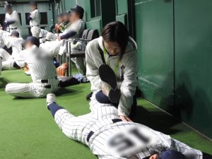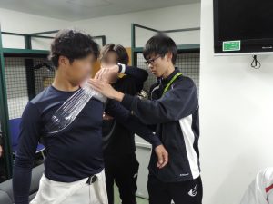 学生は、ストレッチやウォーミングアップ・クーリングダウン・アイシング等を担当させていただきました!