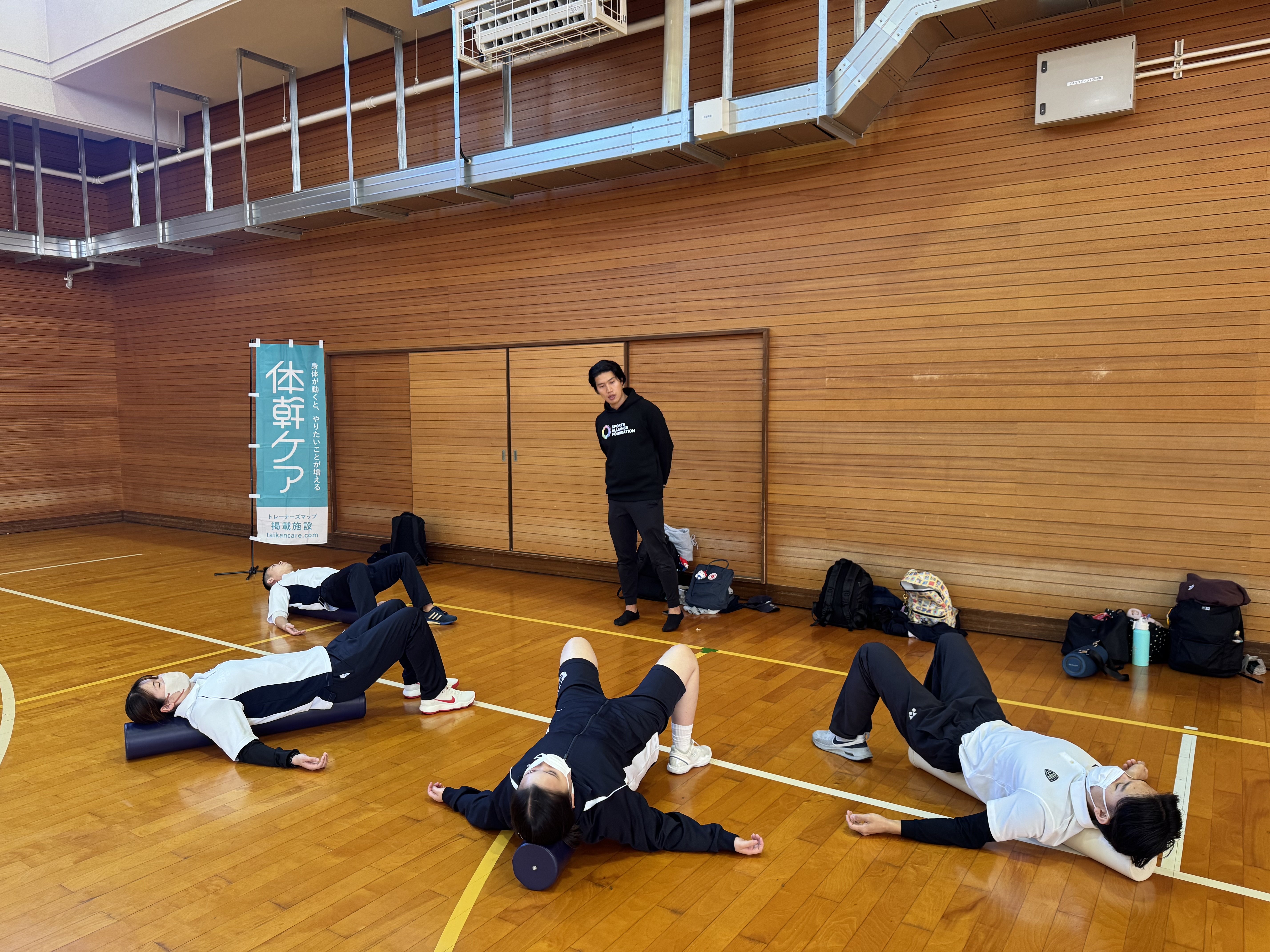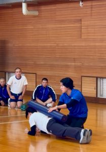前半は日本コアコンディショニング協会の方がストレッチポールの指導を行い、本校アスレティックトレーナー専攻科の学生もサポートをさせていただきました!