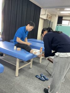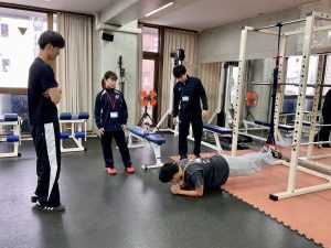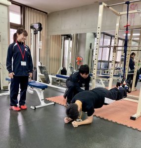 体験授業は、テーピング、ギアトレーニングを行いました。